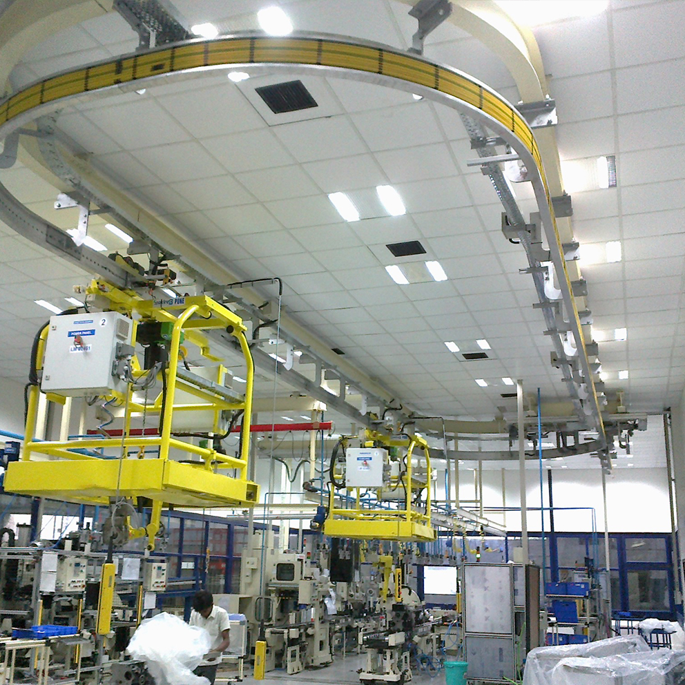 The EMS boasts several key advantages, including a carrying capacity of up to 3 tons, low friction rails for easy movement, modular designs for custom layouts, and a low-maintenance, space-efficient setup. It is ideal for variable-speed operations, with modular track and tractor assemblies pre-tested at Sparkline for rapid installation. Successfully installed across major automotive companies in India, Sparkline’s EMS integrates advanced components like Siemens, Mitsubishi, and Allen Bradley PLCs, offering reliable performance and future expansion potential.