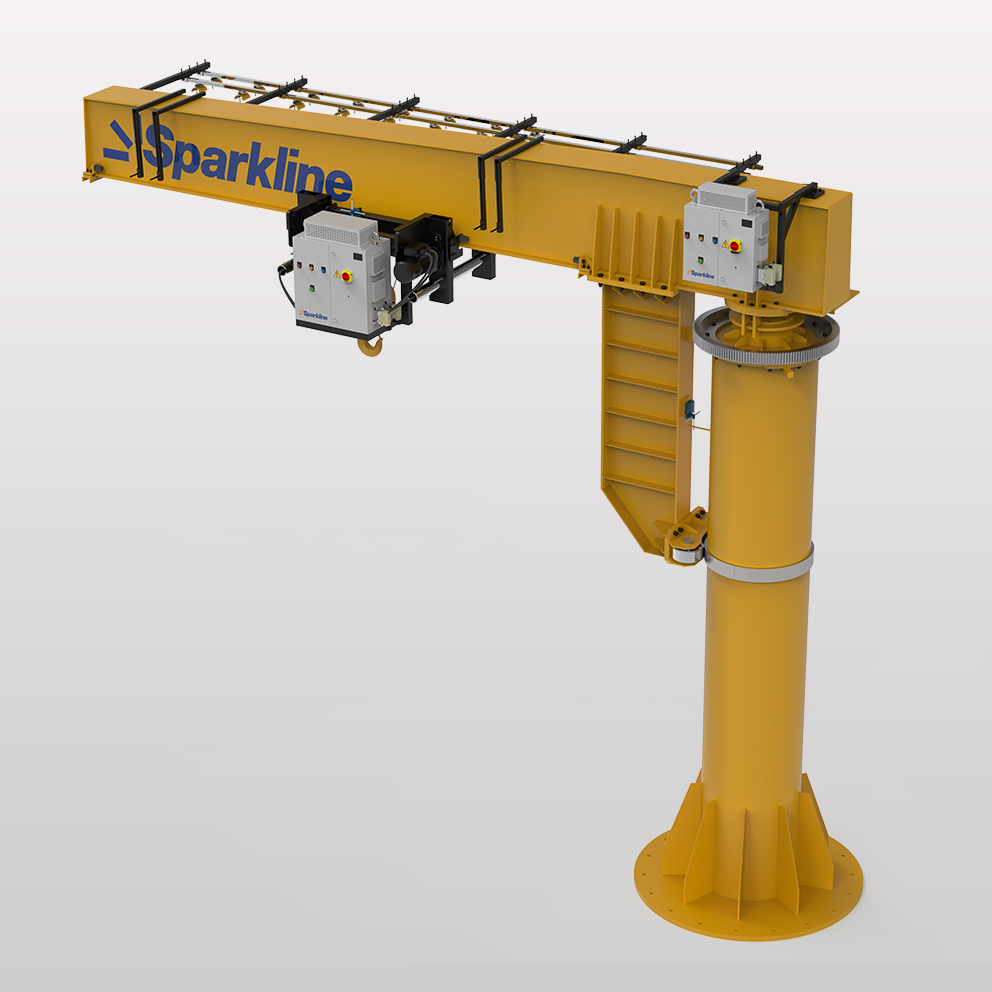 Jib cranes are typically used besides moulding or forming machines to load the coils or components onto the machines, on LNG tanks to replace and remove the cryogenic pumps that carry the product to the ships or pipeline to the end user.