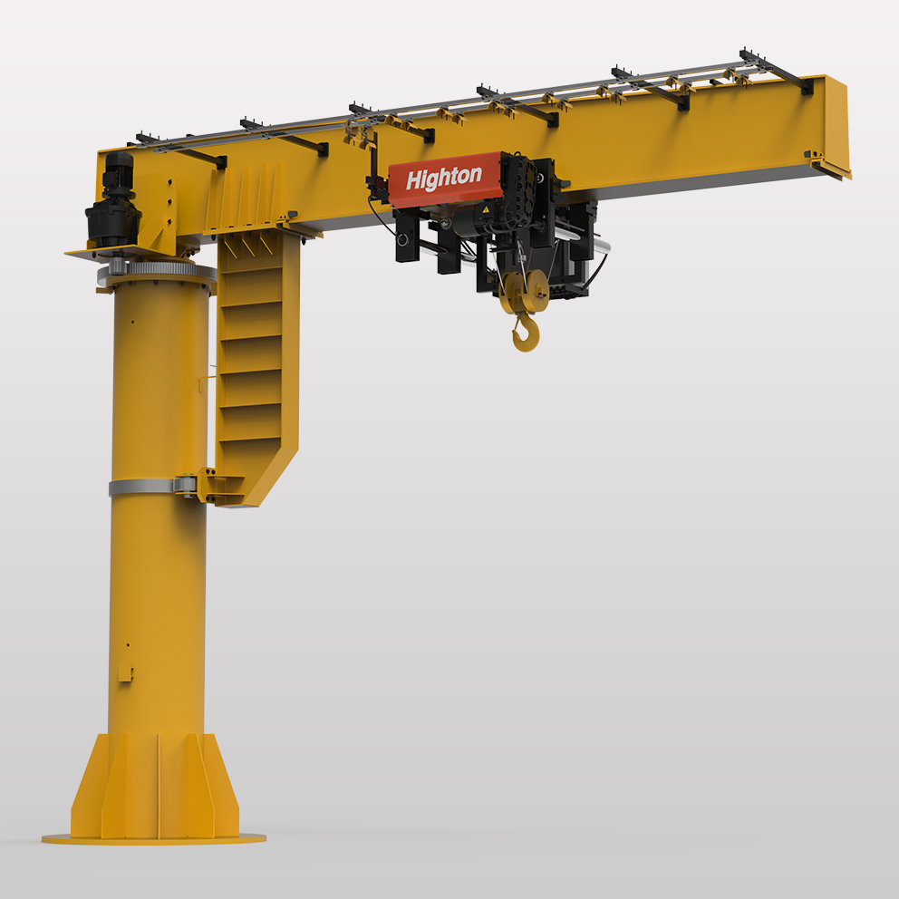 A column mounted jib crane has a column chemically anchored to the workshop floor and an outreach known as jib or the boom. A hoist is mounted on this jib. This jib slews in either 180° or 270° or 360° depending on the site application.