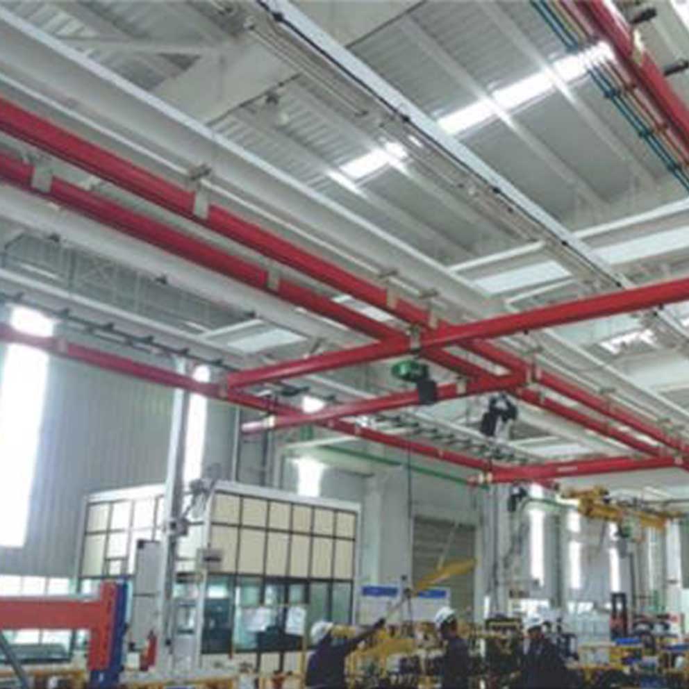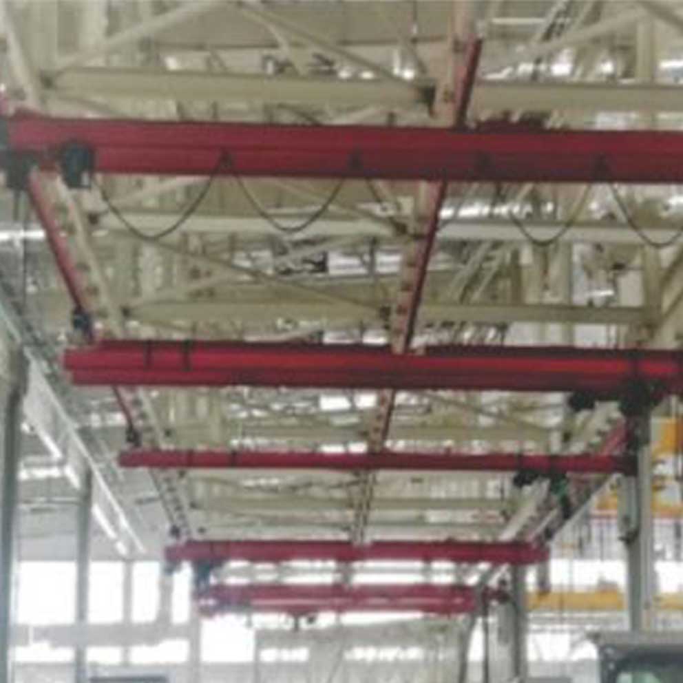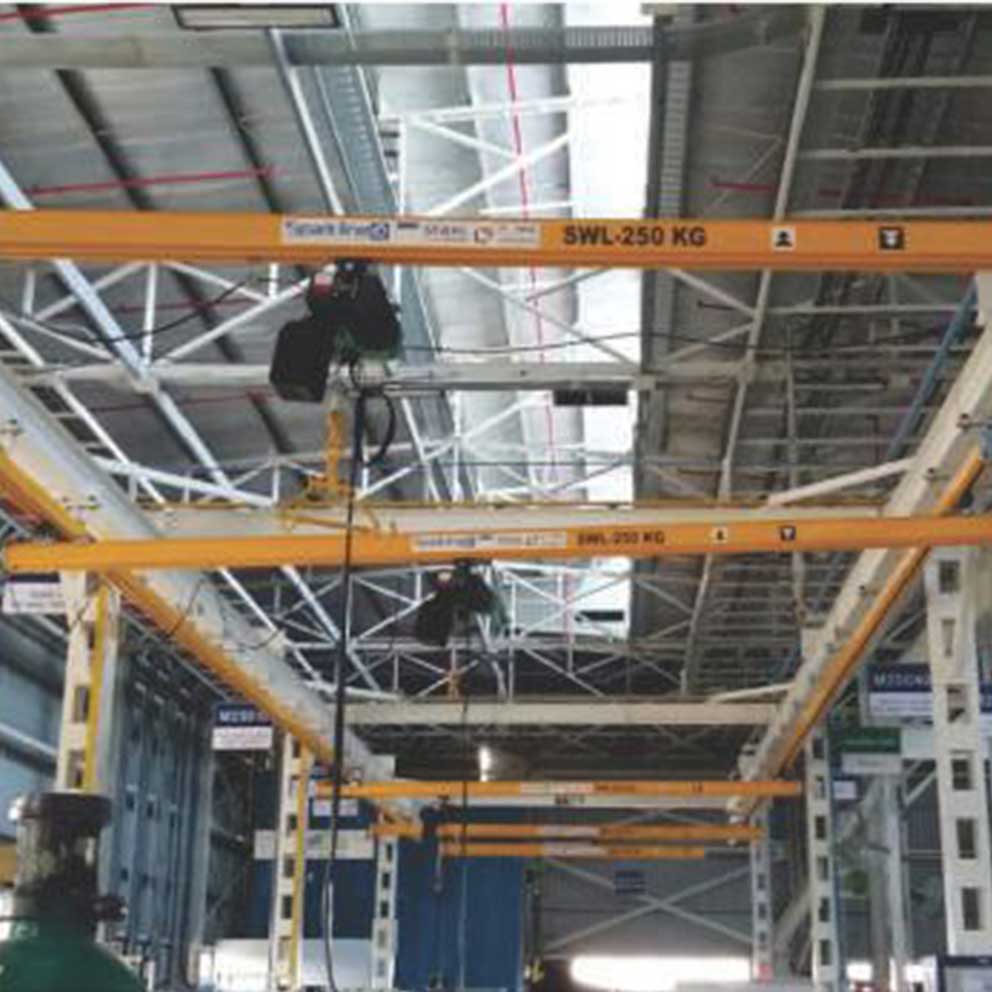 The single girder bridges are lighter than the double girder units and therefore easier to move. Additional supports for the crane runway are not necessary. Even partial areas of a workshop may be easily fitted with suspension cranes at low investment, as required.