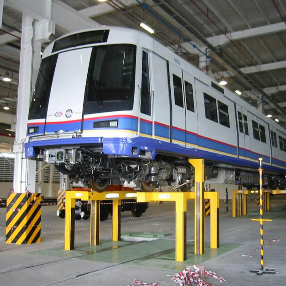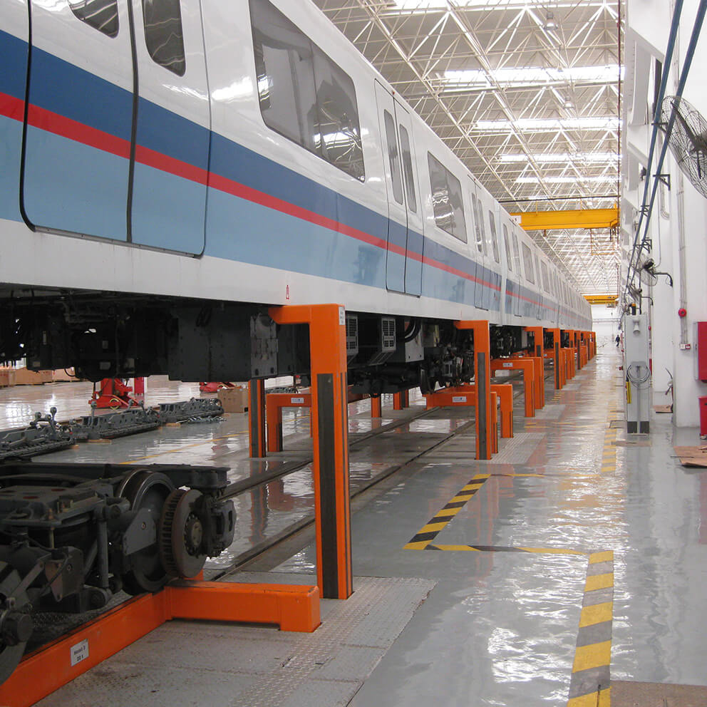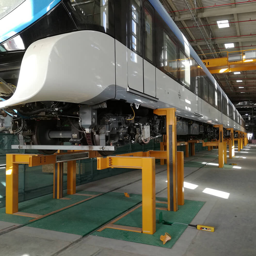 The Underfloor Lifting System is designed to raise trains to the perfect height for inspections, offering a safe and efficient solution for maintaining a wide range of rail vehicles, including subways, trams, and high-speed trains. With advanced control system technology and a proven design, this system ensures that maintenance and repair tasks can be comfortably carried out under the raised vehicle, streamlining the process and enhancing productivity.
