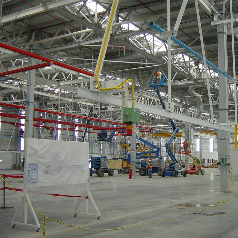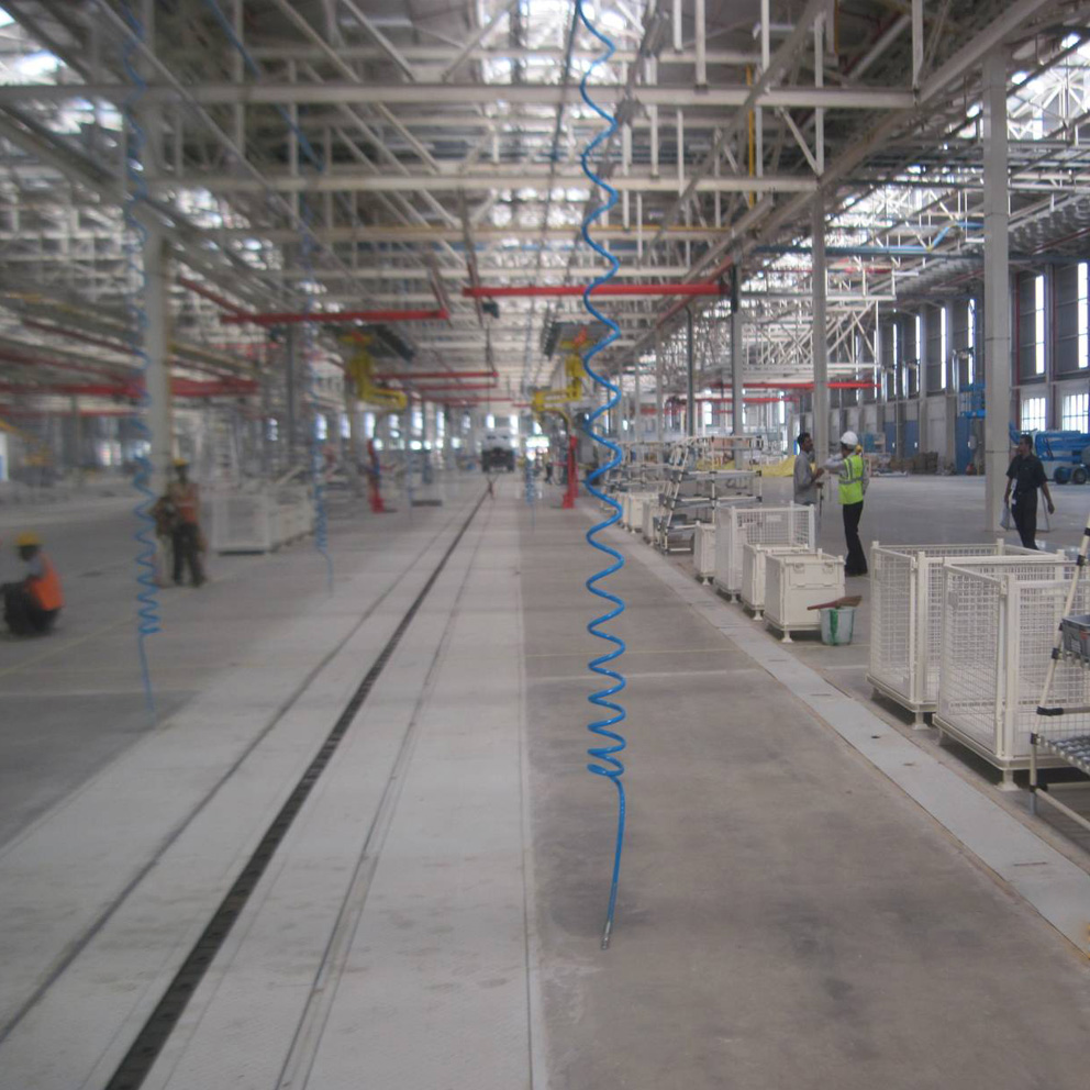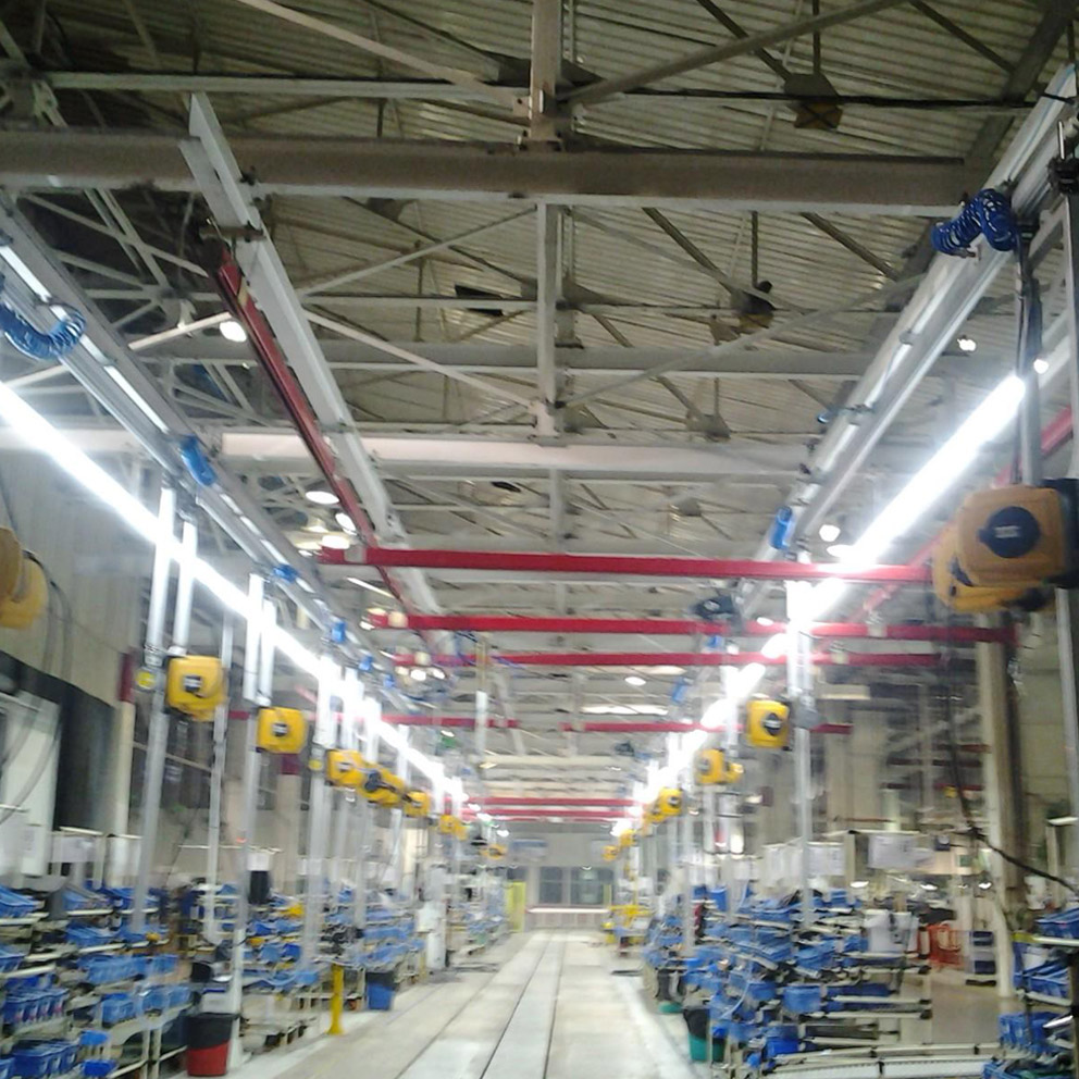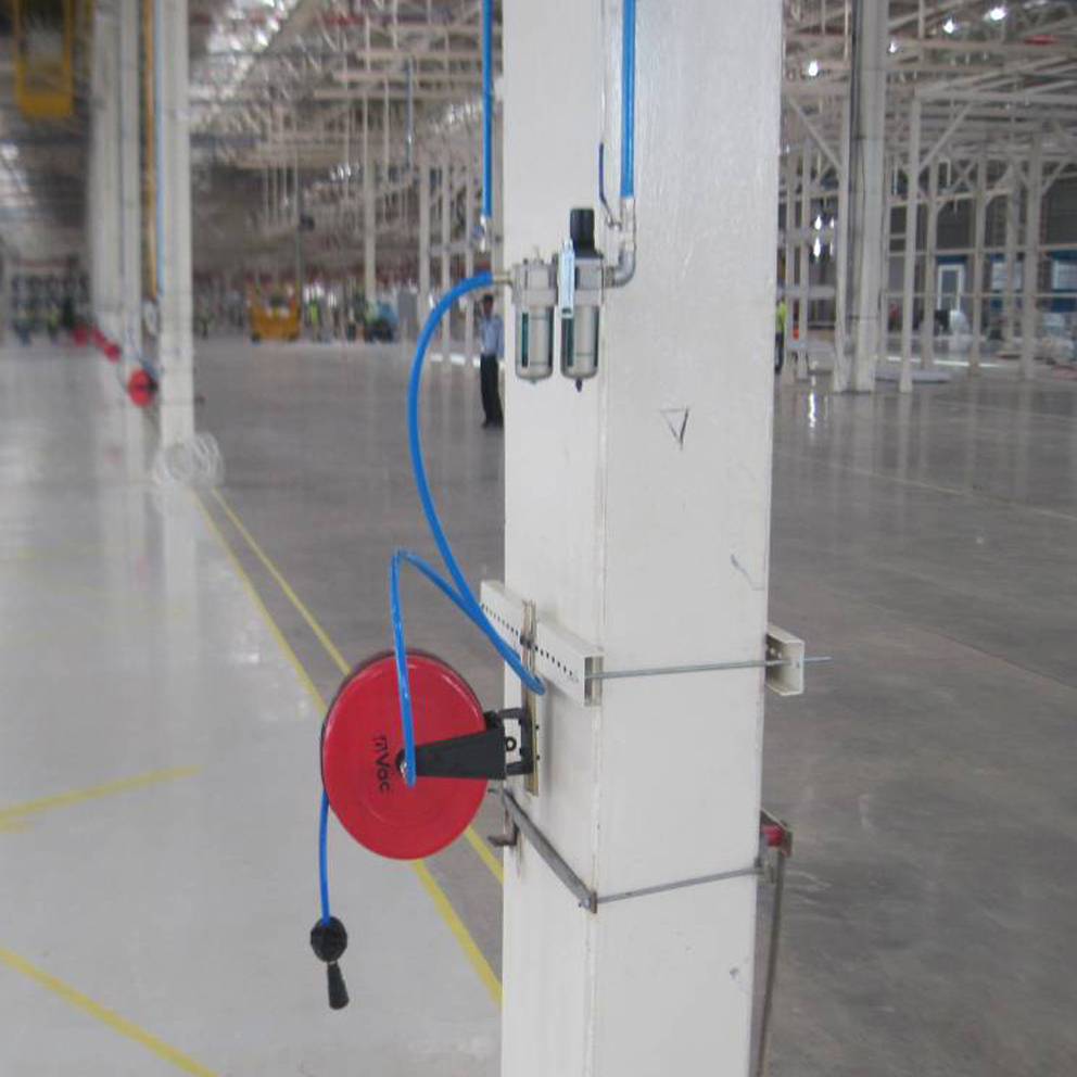 Our offerings include complete pneumatic line tool trolleys and hose reels tailored for pneumatic guns, enhancing efficiency and ease of use. We also deliver customized structures that integrate secondary utilities, such as air and power supply, at critical points throughout your facility.
