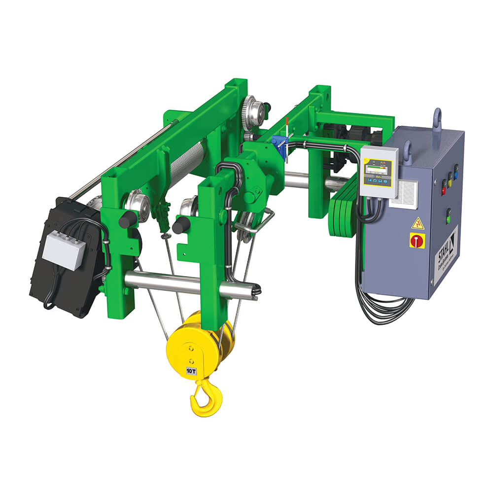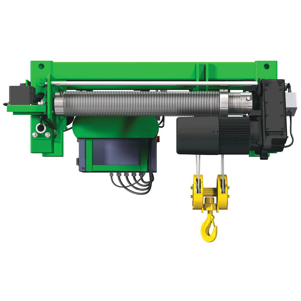 A wire rope hoist is employed where heavier lifting is desired and can lift loads up to 160t.